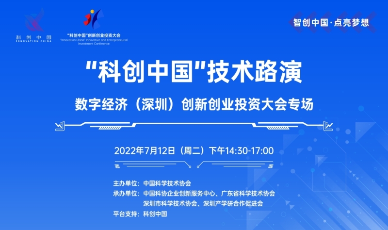 7月12日,由中国科学技术协会主办,中国科协企业创新服务中心、广东省科学技术协会、深圳市科学技术协会、深圳产学研合作促进会共同承办的2022年“科创中国”技术路演——数字经济(深圳)创新创业投资大会专场活动在深圳举行,通过“科创中国”、企业创新最前沿、深圳产学研合作促进会、路演时刻等平台宣传推介。