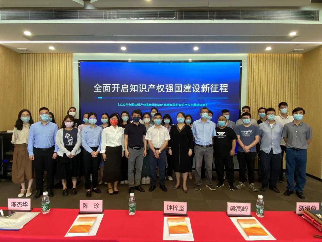 4月26日,世界知识产权日,在中国创新创业成果交易会办公室、广州市黄埔区科学技术协会(广州开发区科学技术协会)、广州开发区知识产权局的指导下,园区联合广州华昇科技咨询有限公司、超凡知识产权服务股份有限公司共同举办2022年全国知识产权宣传周活动之尊重和保护知识产权主题培训会。广州开发区知识产权局局长钟梓坚、广州市科学技术协会二级调研员梁高峰、广州市黄埔区科学技术协会主席贾漫蓉、中国创新创业成果交易会成果转化投融资联盟副秘书长陈杰华、广州华南新材料创新园有限公司总经理谢泽帆等领导出席活动。